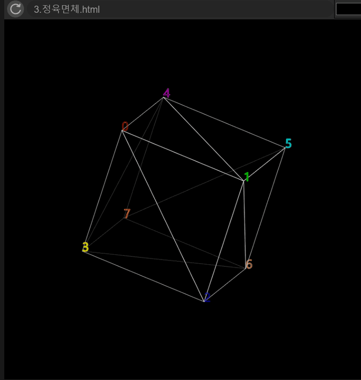 꼭지점 만으로는 3D 변환을 확인이 어려워 꼭지점을 선으로 이어서 면을 표현해보겠습니다.